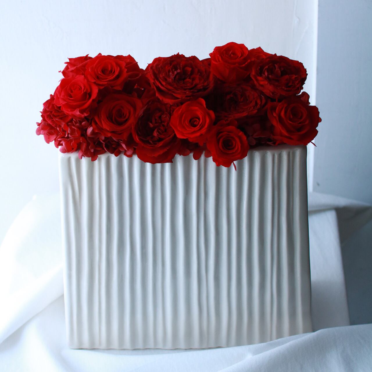 生花に特殊な加工を施したもので、生花本来の質感や鮮やかな色合いを長い間楽しむことができます。