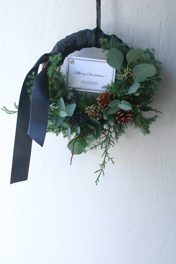 青々とした針葉樹の香りや質感はフレッシュなリースならでは。