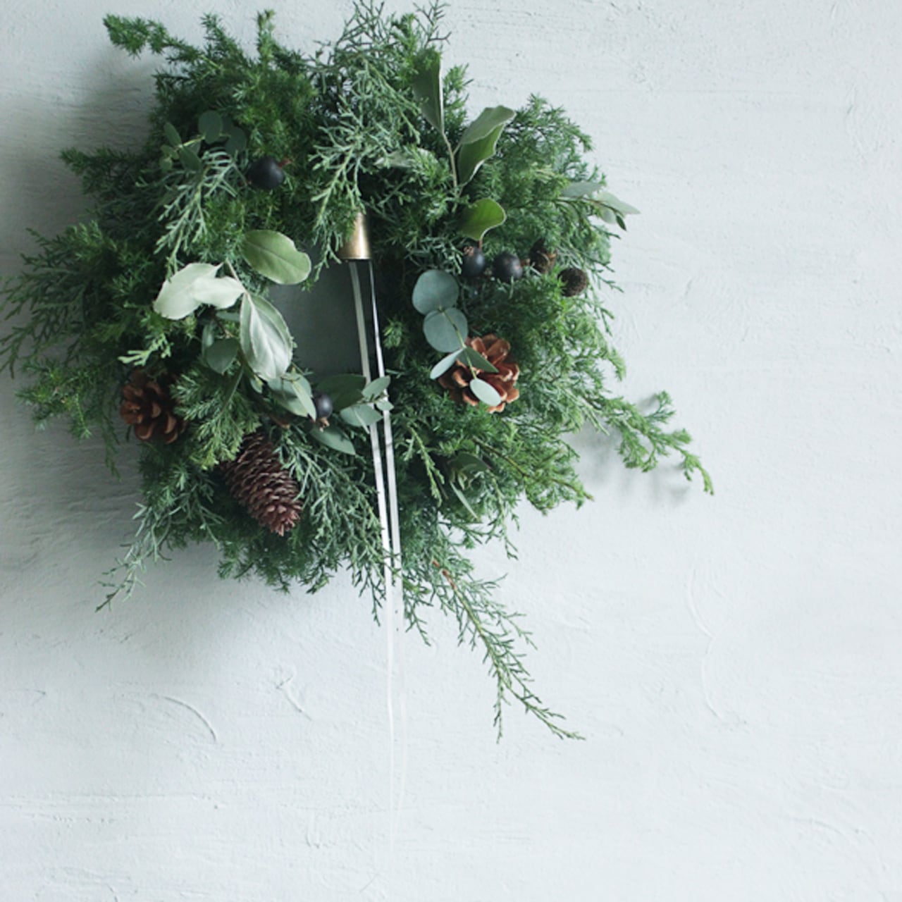 青々とした針葉樹の香りや質感はフレッシュなリースならでは。